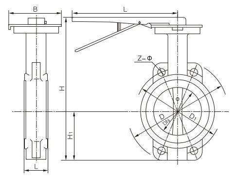 D71F四氟密封對(duì)夾蝶閥主要外形尺寸