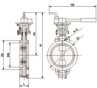 D73H對夾式硬密封蝶閥主要外形尺寸